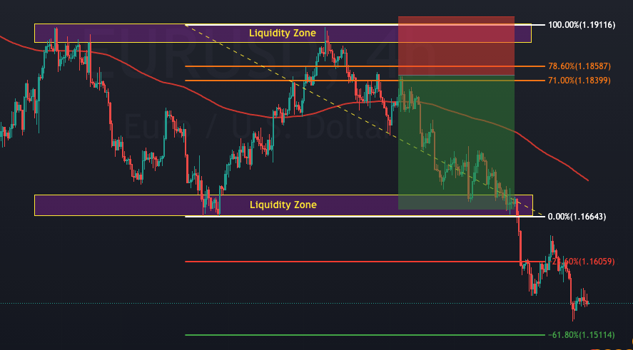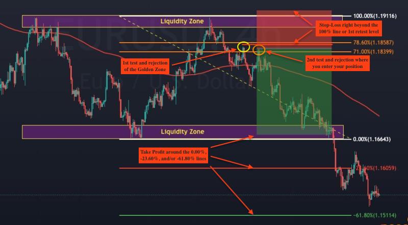 As with most trades, this strategy is best used in confluence with other buy or sell indicators. Using the Golden Fib by itself is not a reliable means of trading. That said, it is particularly effective when paired with liquidity zones and a long-term moving average, such as the 100 or 200 EMA/SMA.