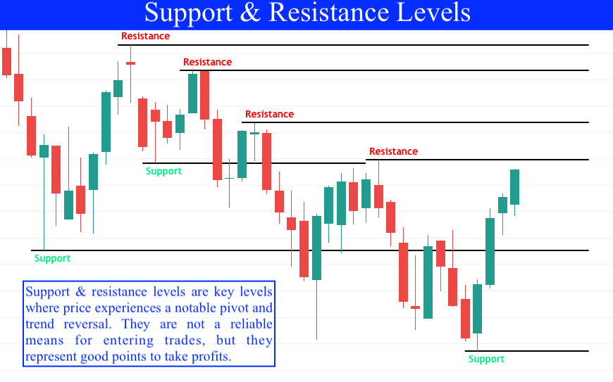 Support and resistance lines/areas are not themselves a reliable way to trade, but they represent significant price points where more liquidity (buyers and sellers) enter the market to drive price in some direction.