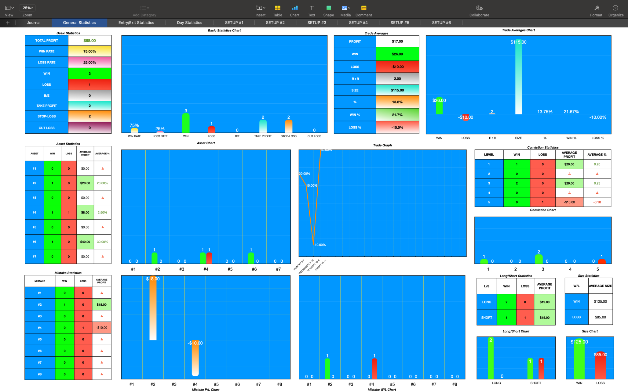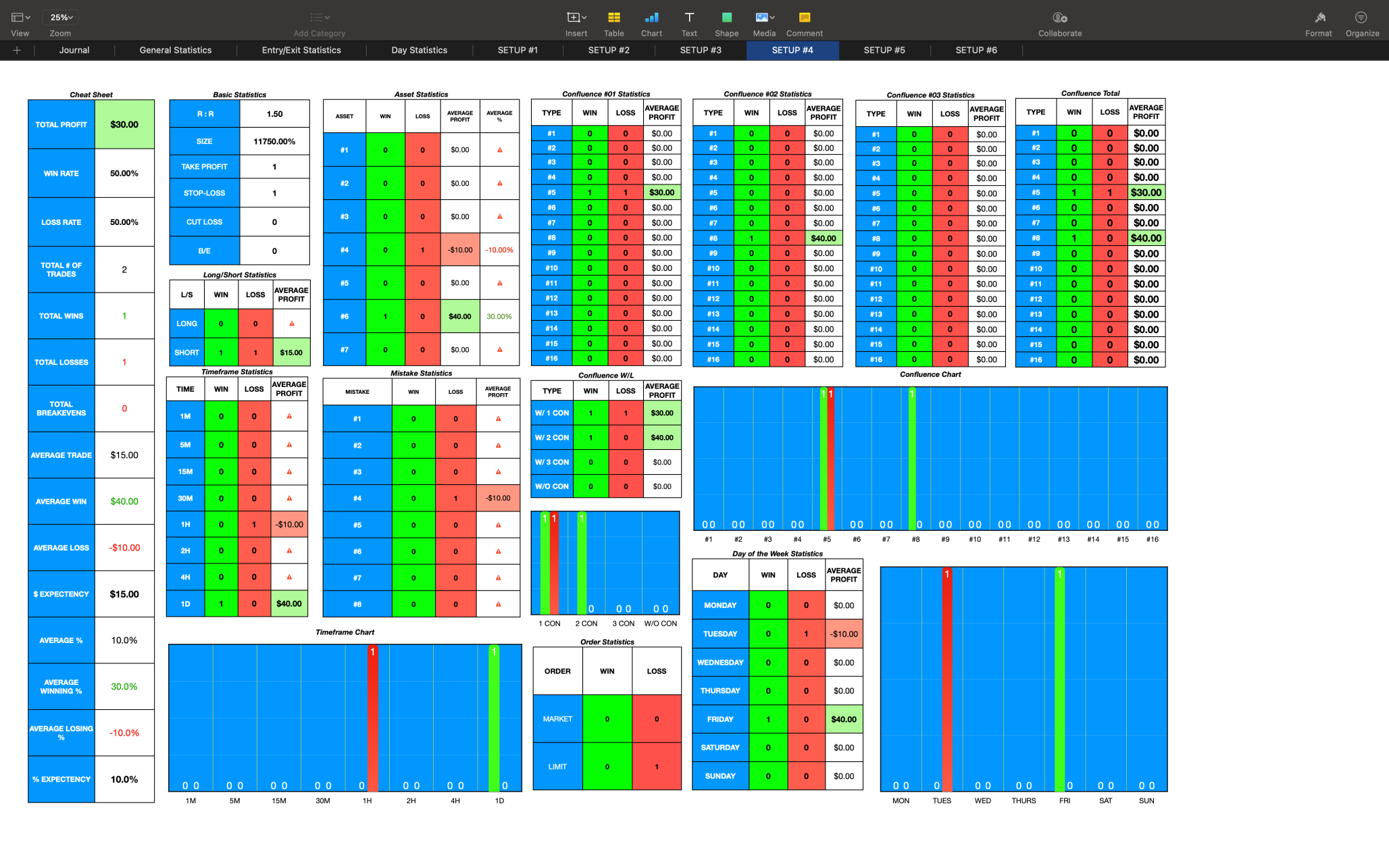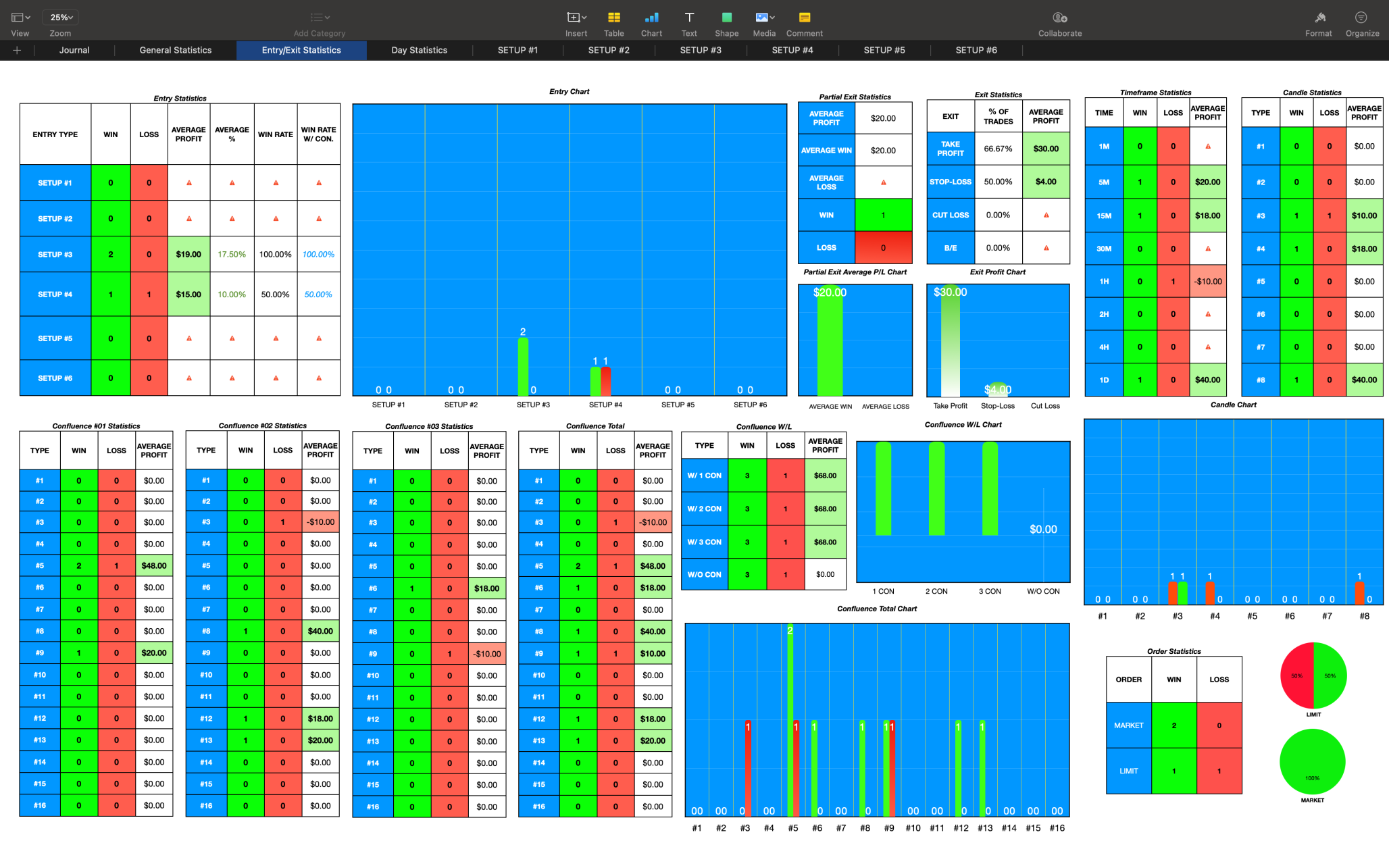 Entry Statistics - Add your personal trade Setups in cells #1 - #6
