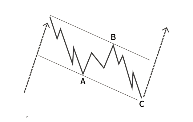 The corrective wave normally has three distinct price movements – two in the direction of the main correction (A and C) and one against it (B).