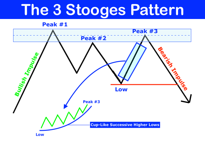 The 3 Stooges is a frequently-seen chart pattern that represents a reliable SHORT opportunity.