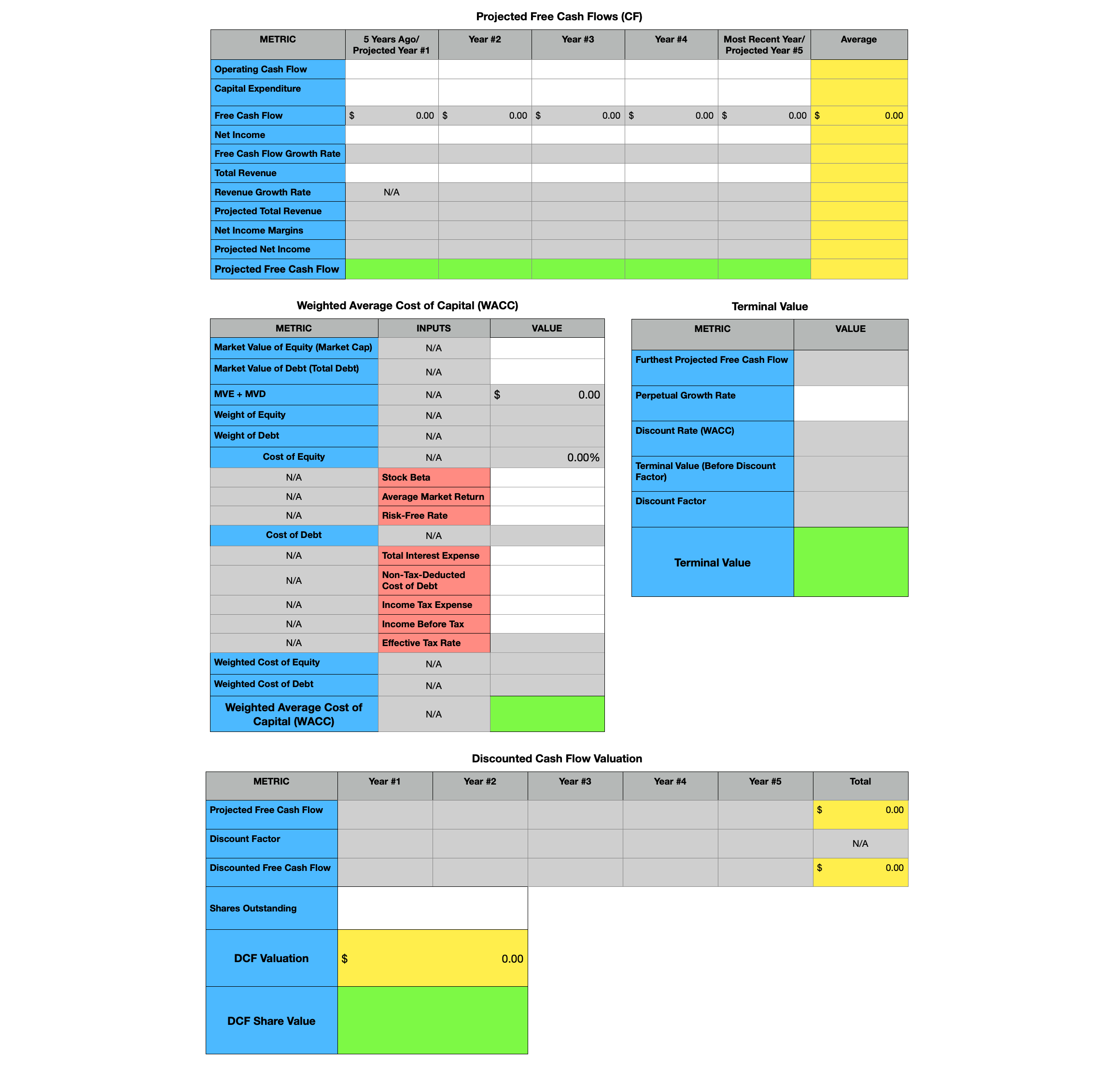 - Discounted Cash Flow (DCF) Spreadsheet