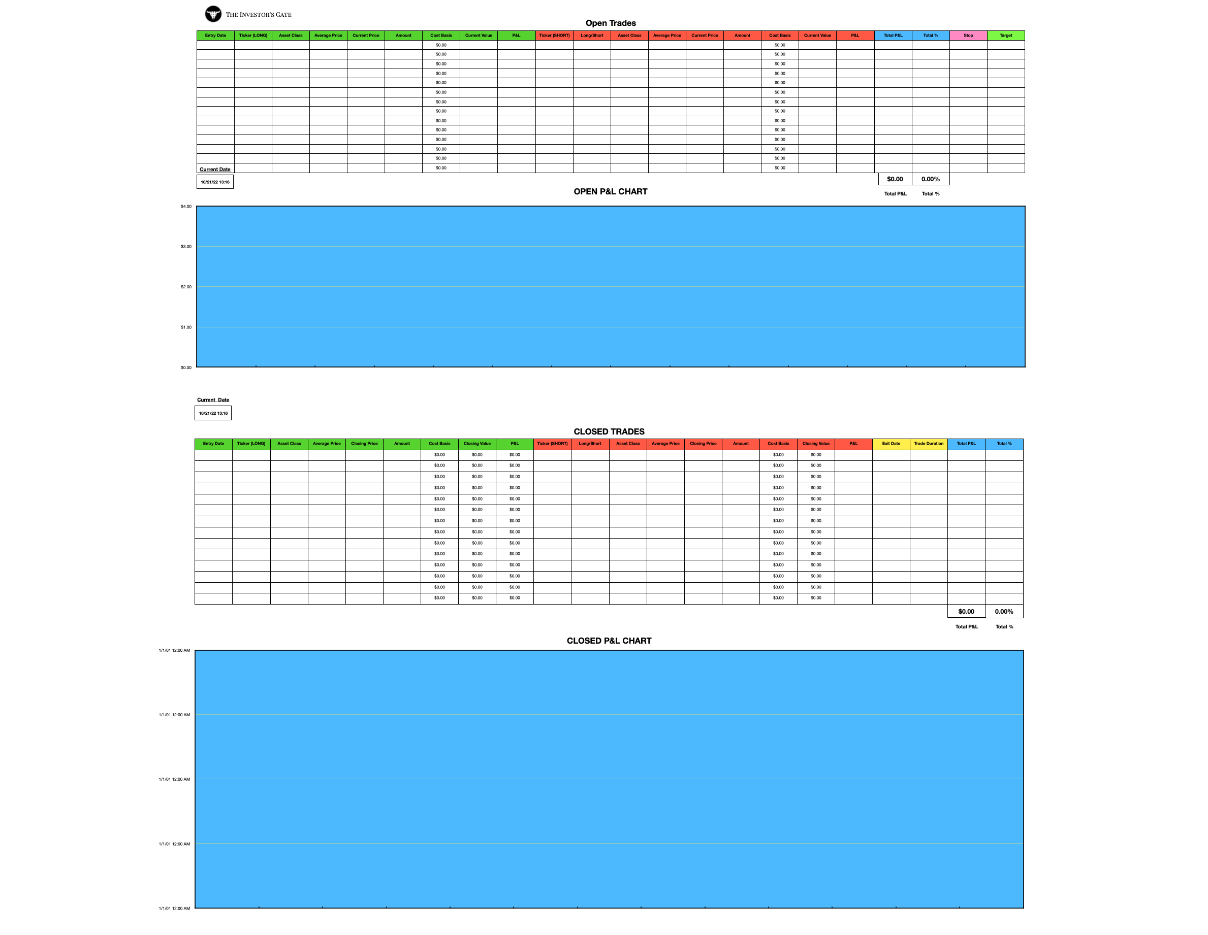 Automatic total P&L/percentage calculations for open and closed trades and each asset.