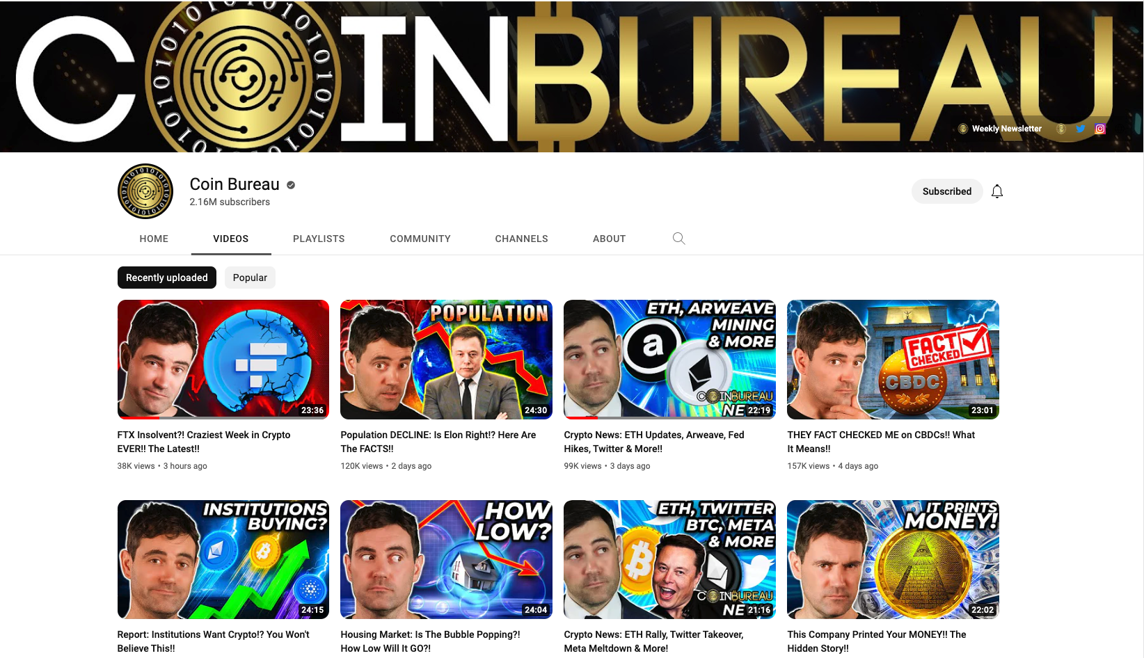 Coin Bureau is one of the most popular crypto YouTube channels with over 2M subscribers (and for good reason), putting most other cryptocurrency YouTube channels to shame.